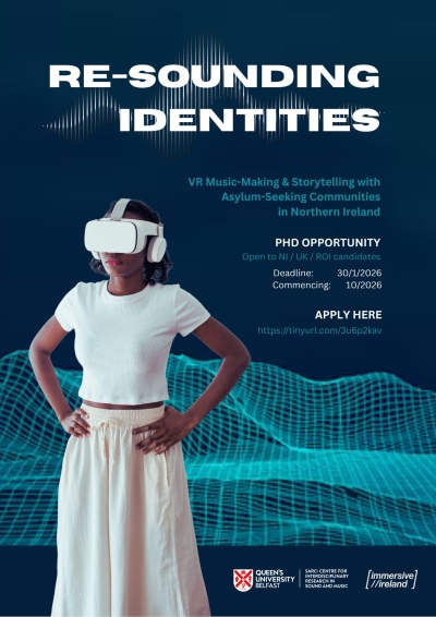 "Re-Sounding Identities" - a fully funded PhD exploring VR Music Making & Storytelling with Asylum-Seeking Communities in Northern Ireland, particularly young women and girls. The project investigates how immersive technologies can foster inclusion, belonging, and skills development for marginalised groups facing displacement, gender inequalities, and cultural invisibility.