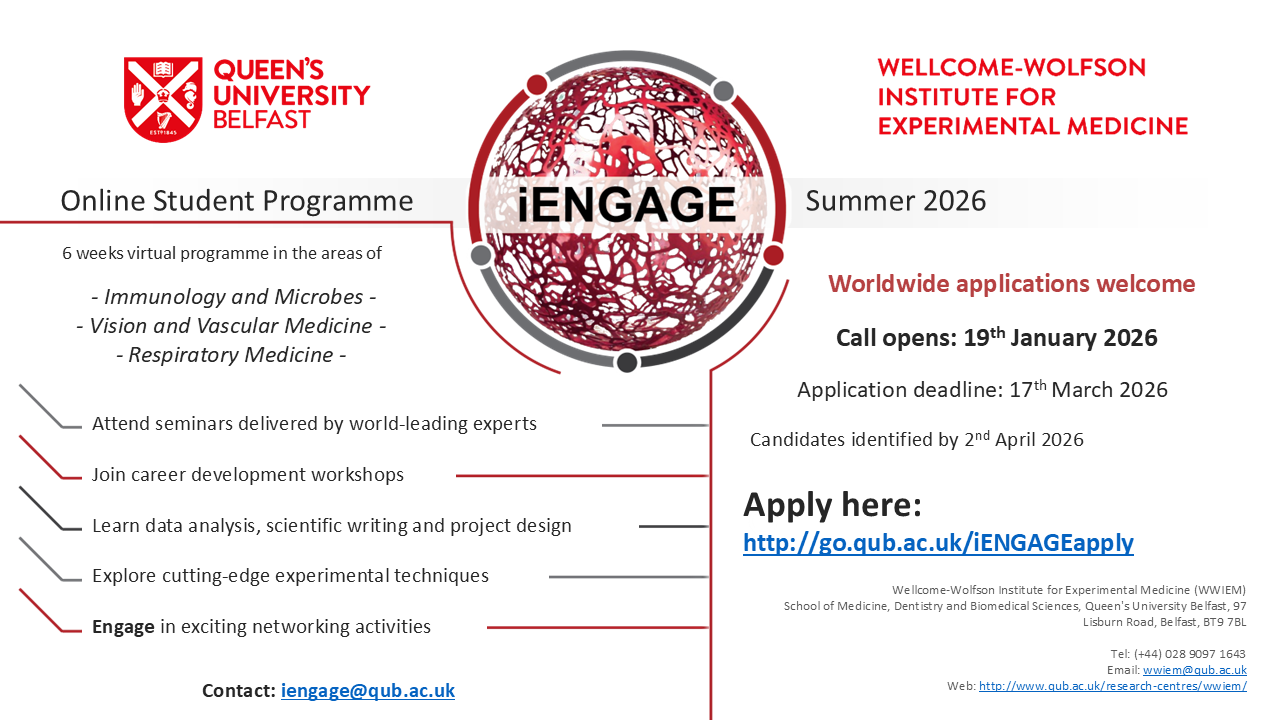 Open for applications between 19th January and 17th March, 2026. Apply here: http://go.qub.ac.uk/iENGAGEapply