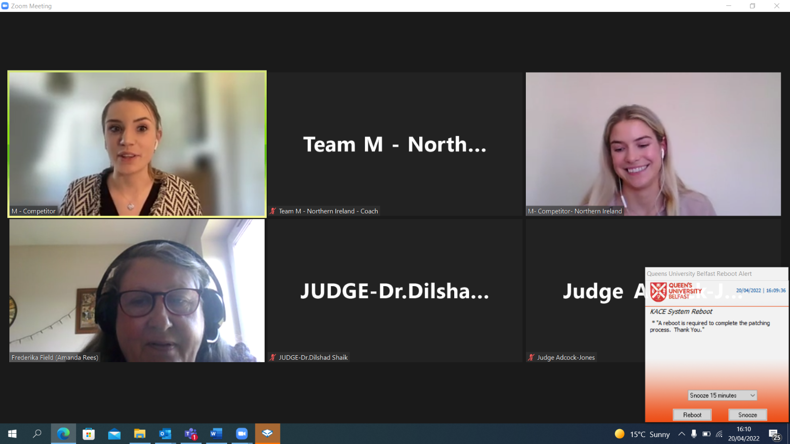 Unfortunately, we did not make it through to the final but wish to congratulate the winning team, Canada. We thoroughly enjoyed the competition and gained valuable skills on how to identify the issue at hand and offer the client sensible and suitable advice with limited information. We would like to thank our coach, Stuart Harper for support and enthusiasm throughout the process.
