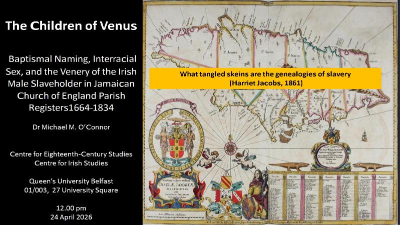 CECS / IIS Seminar: Michael O'Connor (QUB), 'The Children of Venus: Baptismal Naming, Interracial Sex, and the Venery of the Irish Male Slaveholder in Jamaican Church of England Parish Registers, 1664-1834'