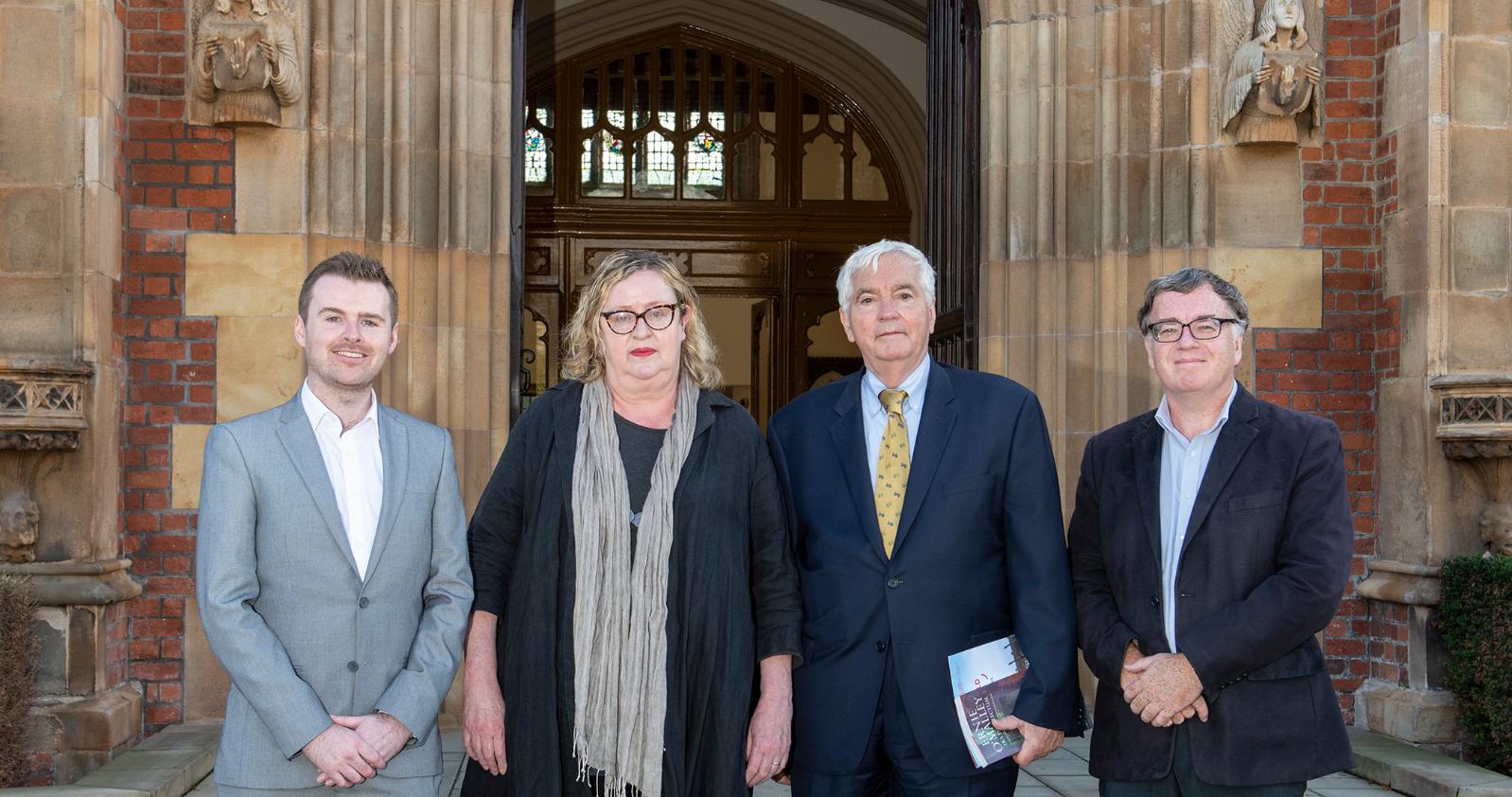 Dr O’Dwyer met with members of the senior management team, academics in the Institute of Irish Studies, and history students at the University. Pictured with Dr. O’Dwyer are Dr. Darragh Gannon, Acting Director of the Institute of Irish Studies Dr. Margaret O’Callaghan, and Director of the Institute of Irish Studies Prof. Peter Gray.