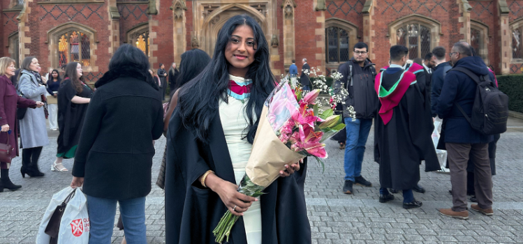 Jyothsna Nambala is graduating today with a postgraduate degree in Leadership for Sustainable Development, having overcome homesickness and loneliness following her move abroad to Belfast.