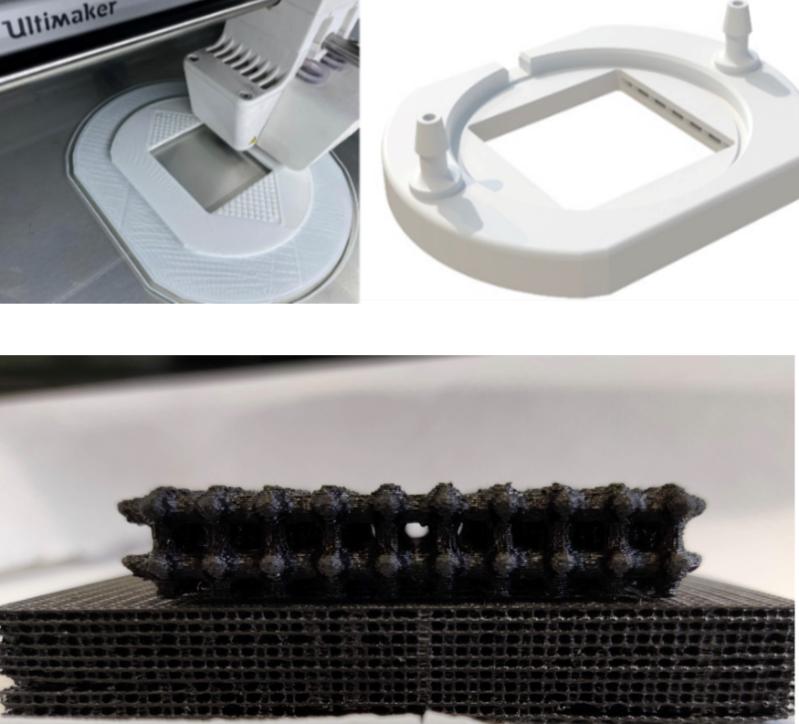 We have recently developed a 3D-printing platform to produce laboratory-scale RFB test cells, demonstrating leak tightness, chemical stability, and versatility with regards to cavity thickness and internal manifold design. Importantly, these cells have demonstrated, through rapid prototyping, improved performance versus a commercially available test cell. Common designs are flow-by and flow-through configurations, the latter of which is the industry standard and the focus of this study.