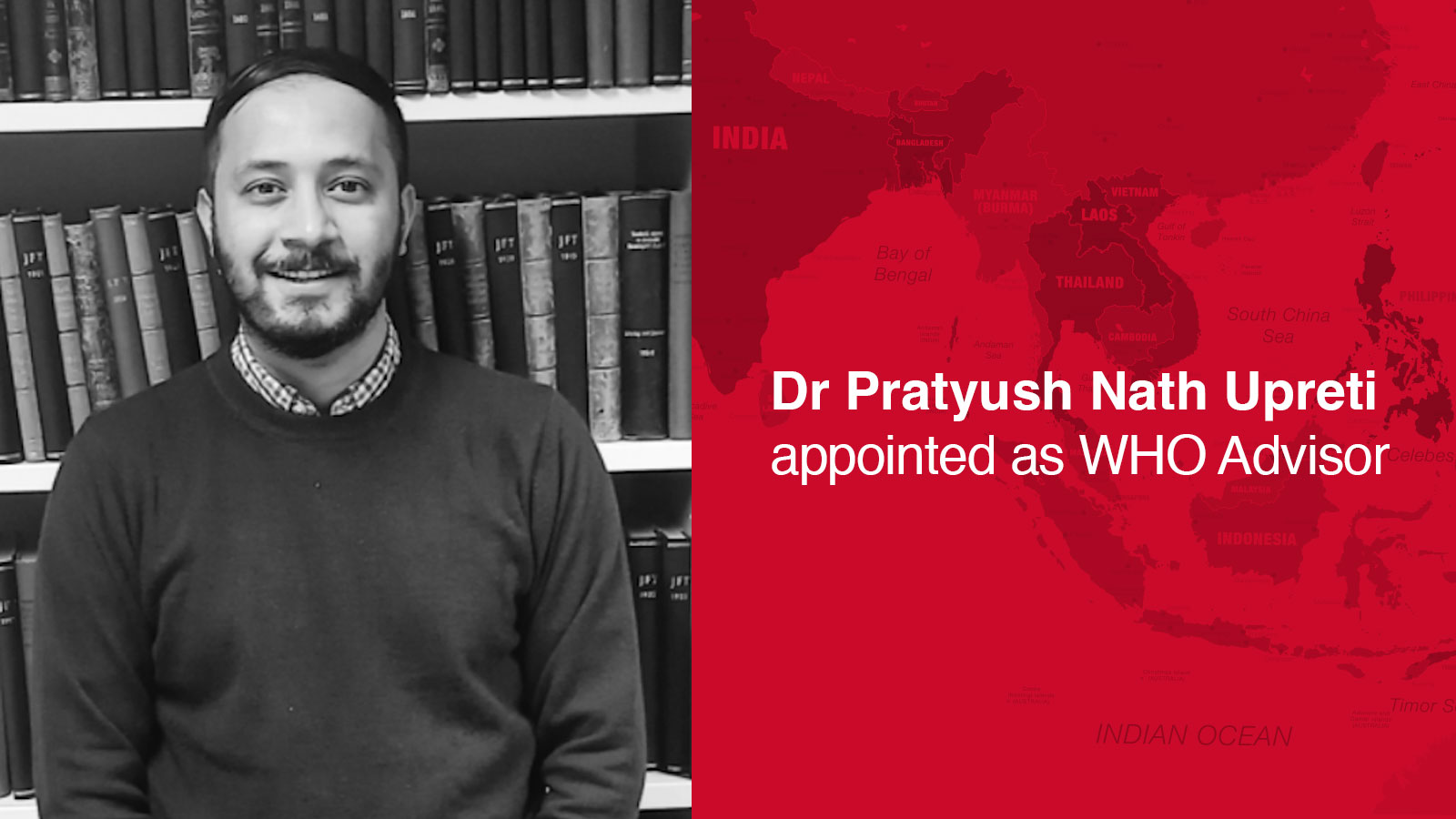 The School is pleased to congratulate Dr Pratyush Nath Upreti on his appointment as an intellectual property expert in a seven-member expert committee formed by the World Health Organisation (WHO) South-East Asia.