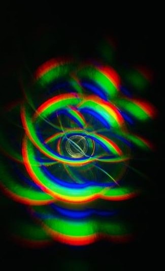 This is a photo I took of the back of a CD using a pair of diffraction sunglasses placed in front of the camera to create this effect.