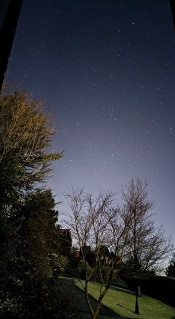 However, this photograph is very different, in that I am only using my phone (pixel 4a), and a very cheap tripod. The hardware is mediocre at best, but the software behind it is much more powerful. How it works is that my phone takes many short exposure shots, about 15 seconds each, in order to prevent the stars from "trailing". Then it needs to overlay them to create one clean image.
