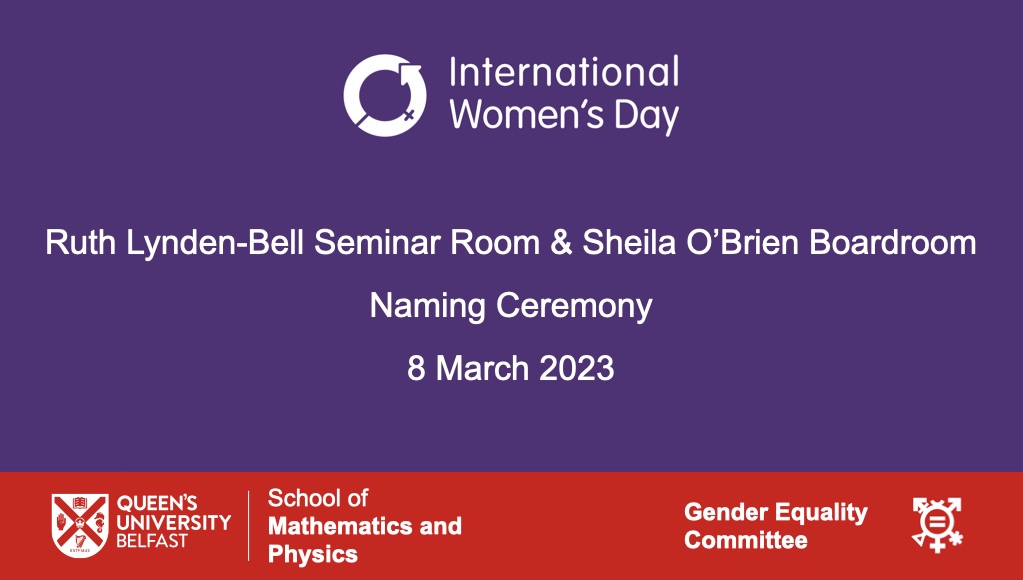The School of Maths and Physics is delighted to celebrate the contribution of two former members of Staff by renaming two rooms in their honour on International Women’s Day: the Ruth Lynden-Bell Seminar Room and the Sheila O’Brien Boardroom.