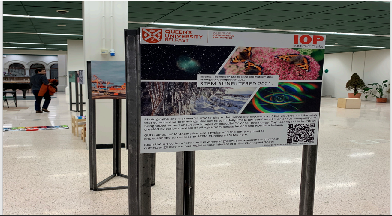 Queen's University School of Maths & Physics and IOP Ireland are proud to present highlights from our #STEMUnfiltered 2021 photography competition in an exhibit at 2 Royal Avenue as part of NI Science Festival - come along and check out the amazing images and learn a little about the science all around you! Check out our online gallery for more pictures: http://go.qub.ac.uk/STEMPhotoGallery2021
