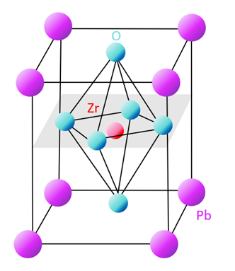 Illustration of a unit cell of Lead Zirconate, the central focus of this project