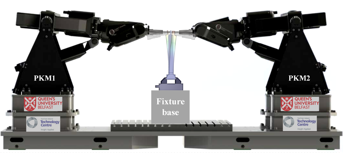 Prof. Yan Jin’s team at Queen’s University Belfast, collaborating with Northern Ireland Technology Centre and University of Manchester, proposed a novel concept with dual parallel robots collaboratively performing collaborative machining to double the productivity of high-value thin-walled parts, which are widely utilised in aerospace, defence and energy sectors. A two-fold greater productivity has been achieved as the novel method doubles the material removal rate while eliminating the cumbersome in-process steps (e.g. changeover and calibration) in conventional single-sided machining. The work has recently been published in the prestigious Journal of Materials Processing Technology (2022, Vol. 299, 117395). Several industrial partners already expressed their interests and are currently engaged with the team to explore the work further.