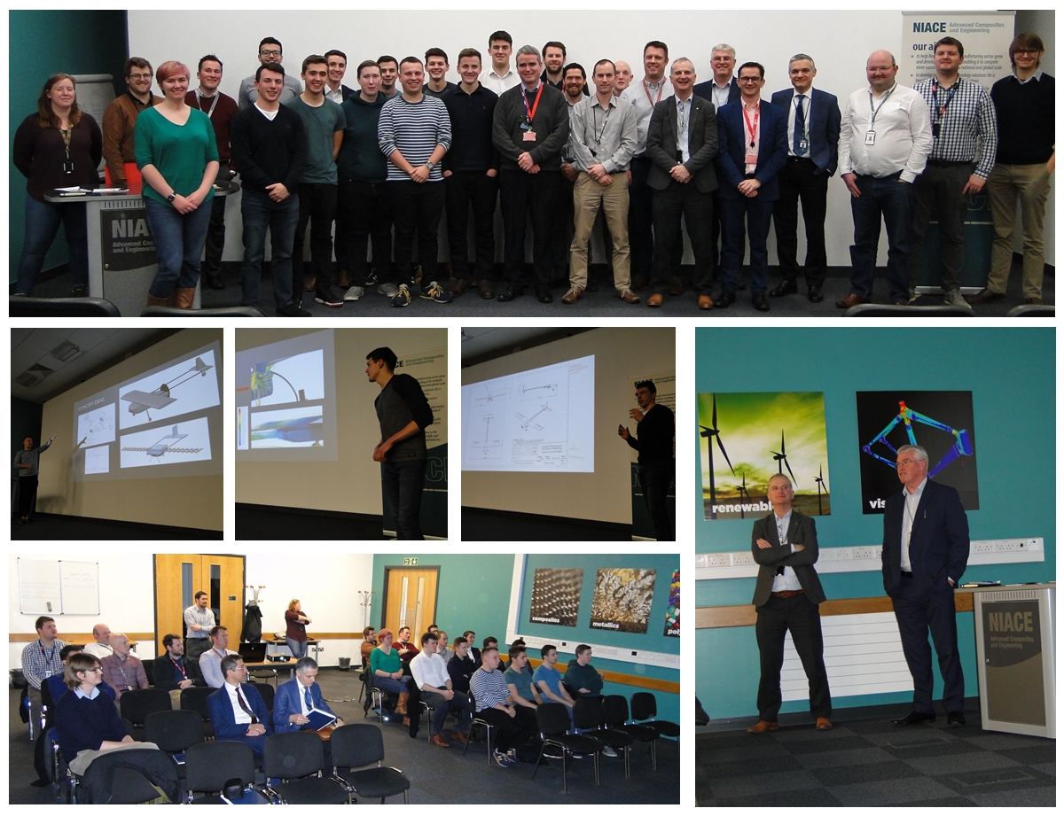 IMechE UAS Challenge 2019 participants from the School of Mechanical and Aerospace Engineering (SMAE) at Queens gathered at NIACE on the 9th of December. The teams were there after an invitation from Bombardier in Belfast to recognise their significant achievements at the IMechE UAS event in June 2019. Both teams finished in the top three from a starting field of thirty two entries from the UK, Canada, Denmark, Holland, Pakistan and SriLanka. Aerospace students Jacob, Matthew and Ryan gave presentations covering the development of their aircraft and insights into their overall experience. These included their academic and technical achievements, their overall enjoyment of their road trip to Wales and the comradery of their eventful camping experience! They also thanked their Bombardier mentors who were also in attendance and who supported them during the development of their aircraft during the 2018 -19 academic year. Mr Paul Hermon, Prof. Brian Falzon & Dr Joe Butterfield spoke on behalf of the School - thanking the students for their efforts and congratulating them on what they achieved. They reinforced the benefits of the design-build philosophy in our stage 3 group projects and affirmed the positive impacts that our participation in the IMechE UAS challenge has had on the quality of both our curriculum and our graduates. Stephen Addis, Michael Curran and Stephen Philips spoke on behalf of Bombardier and again congratulated the SMAE students. They also confirmed the positives around UAS Challenge participation. The competitors see first-hand the realistic challenges around developing and delivering an integrated aerospace system both on time and within budget challenges – just as they will in their future careers as practicing engineers. Many thanks to Bombardier for hosting this event and well done again to team Hibernica Liberandum (Irish Rescue) and team Flytanic. Jordan Davidson represented this year's SMAE Imeche UAS Challenge 2020 entrants at the Bombardier event where he was able to get plenty of advice for the development of their aircraft ASAP (Autonomous Support Aid Platform)! You can meet the rest of the team and keep up to date with their progress on the FLYMechE Facebook Page.