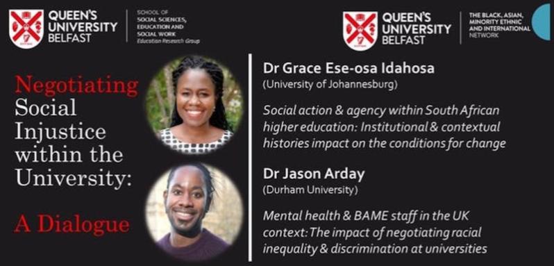 1. Mental health & BAME staff in the UK context: The impact of negotiating racial inequality & discrimination at university - Dr Jason Arday (Durham University)