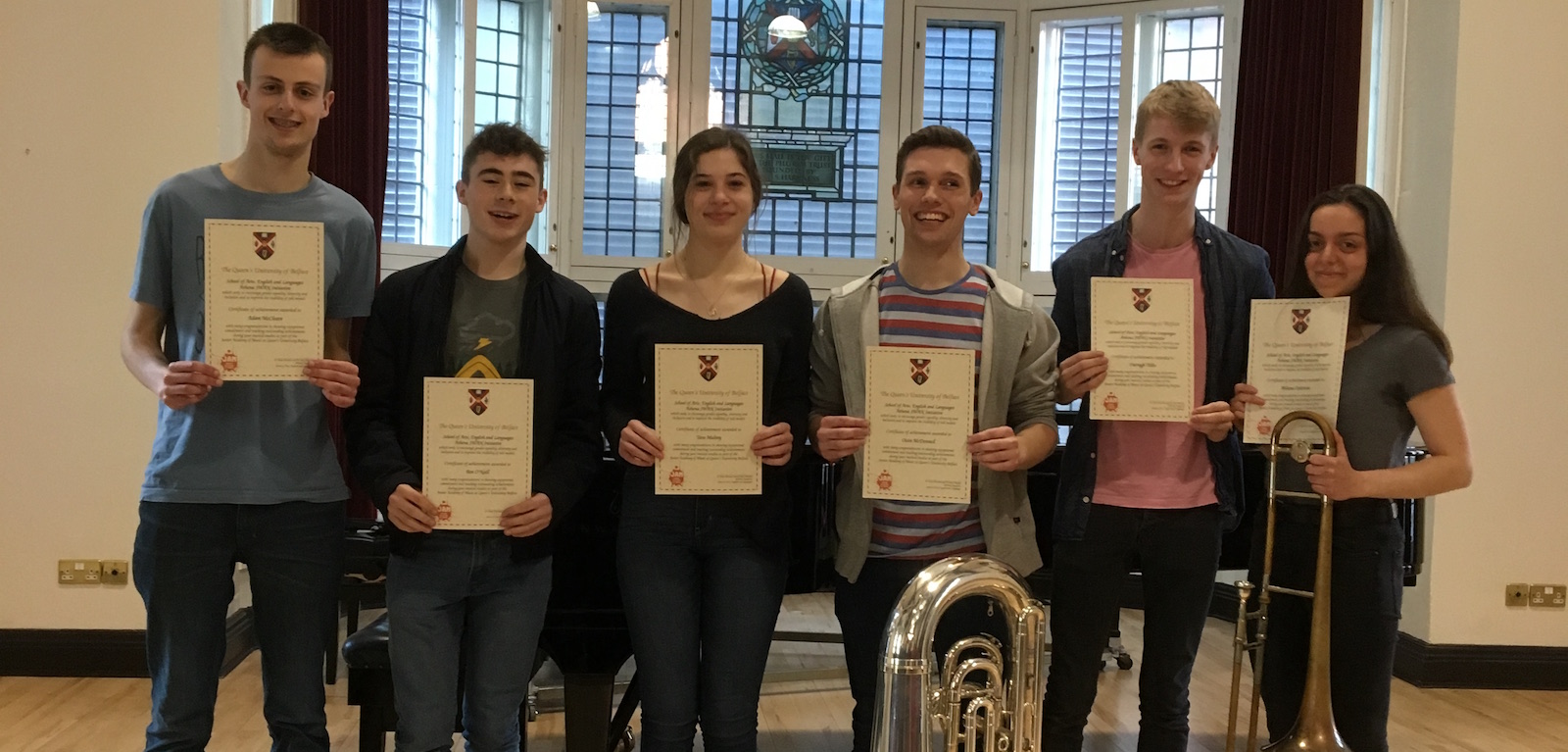 These were given for "showing exceptional commitment and reaching outstanding achievements during their musical studies as part of the Junior Academy of Music at Queen’s University Belfast".