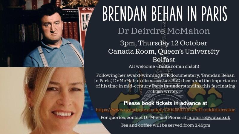 In this talk, she will discuss Behan's philosophical, personal and literary development in post-war Paris and why it is vital in comprehending the importance of his work.