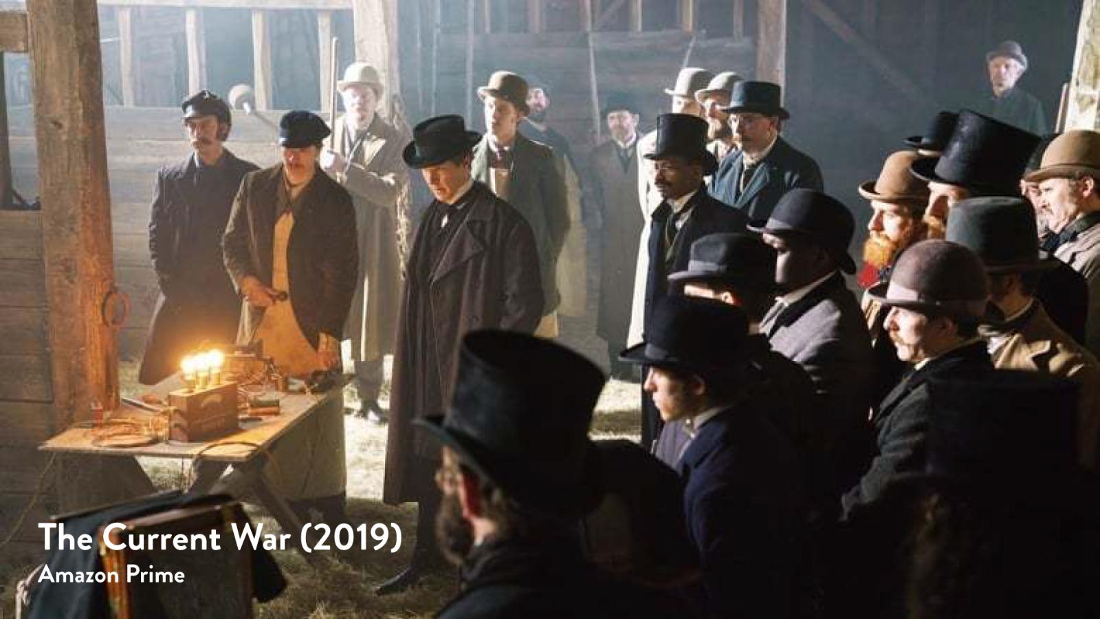 Thomas Edison (Benedict Cumberbatch) and George Westinghouse (Michael Shannon) - the greatest inventors of the industrial age -- engage in a battle of technology and ideas that will determine whose electrical system will power the new century. Backed by J.P. Morgan, Edison dazzles the world by lighting Manhattan. But Westinghouse, aided by Nikola Tesla, sees fatal flaws in Edison's direct current design. Westinghouse and Tesla bet everything on risky and dangerous alternating current. (Amazon Prime)