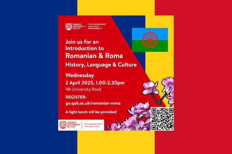 Join us for this Introduction to Romanian and Roma History, Language and Culture, led by Sorina Toma and hosted by the Sanctuary team at Queen's University Belfast.