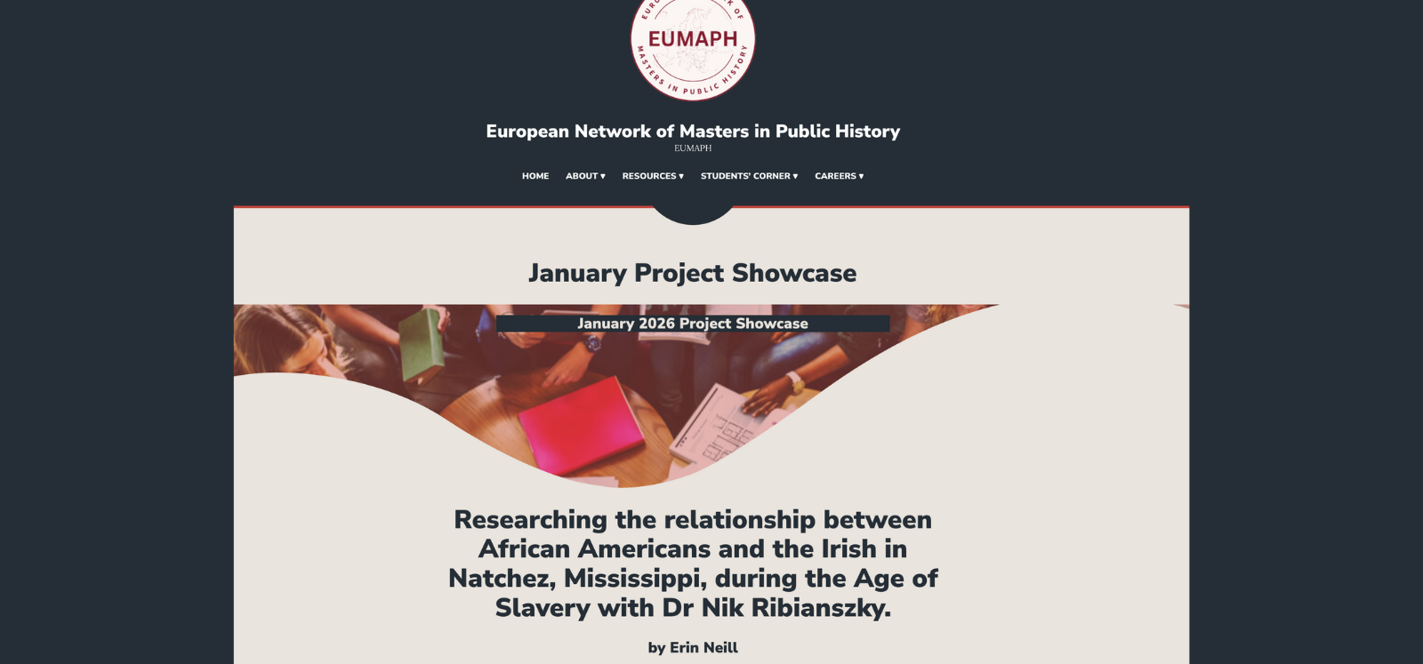The work of Erin Neill (MA in Public History 2024-25) has been showcased by the European Network of Masters in Public History (EUMAPH). EUMAPH brings together students and alumni from Public History Masters programmes across Europe to encourage collaboration, share knowledge, and create opportunities for engagement across national and academic borders.