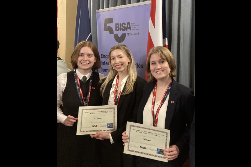 Congratulations to Bayly Drinnan, Lucy Farrell and Kayla Howard-Tripp – three of our final year undergraduate students – who all received Distinguished Delegate awards at the 2026 Model NATO competition in London, organised by the British International Studies Association (BISA) and the Foreign, Commonwealth and Development Office (FCDO).