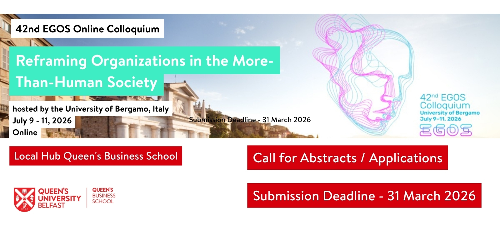 Queen’s Business School is delighted to host the EGOS 2026 Belfast Local Hub from 8–10 July 2026, running in parallel with the main EGOS Colloquium.