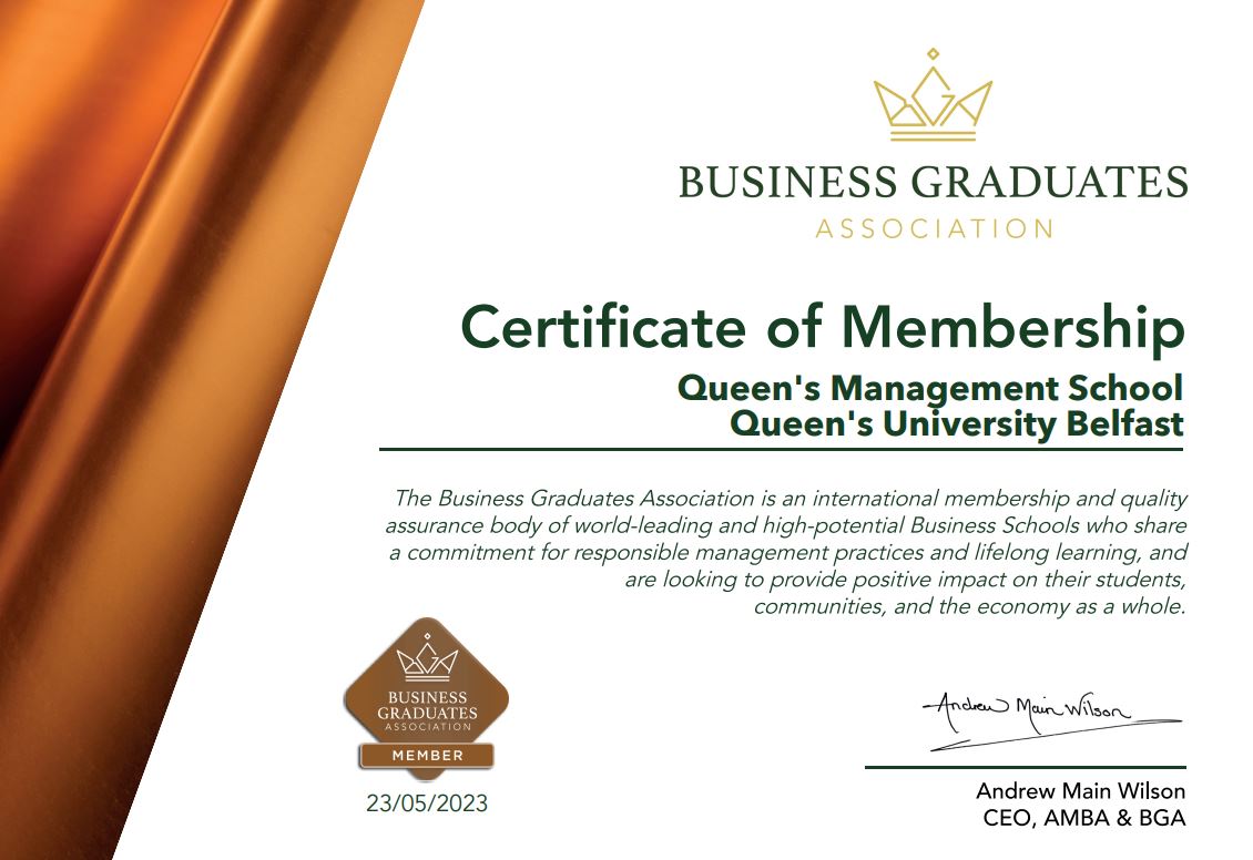 Queen’s Business School is pleased to announce that we are now a member of the Business Graduates Association.