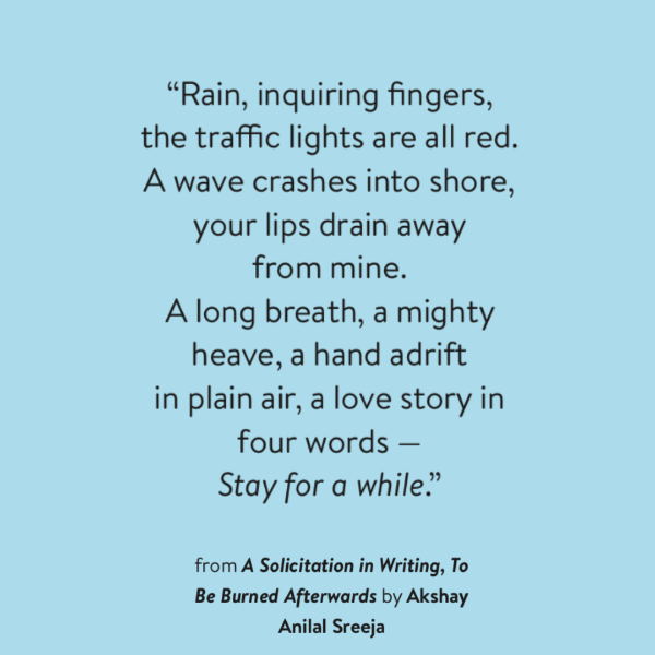 Akshay Anilal Sreeja is from Kerala, India and studies poetry and the Seamus Heaney Centre at Queen’s. His work appears in journals, online magazines, and other vague, nondescript places.