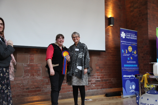 Prof. Amy Jayne McKnight accepts Rare Disease Day rosette from Baroness Ritchie - Image Gallery - (1341753)