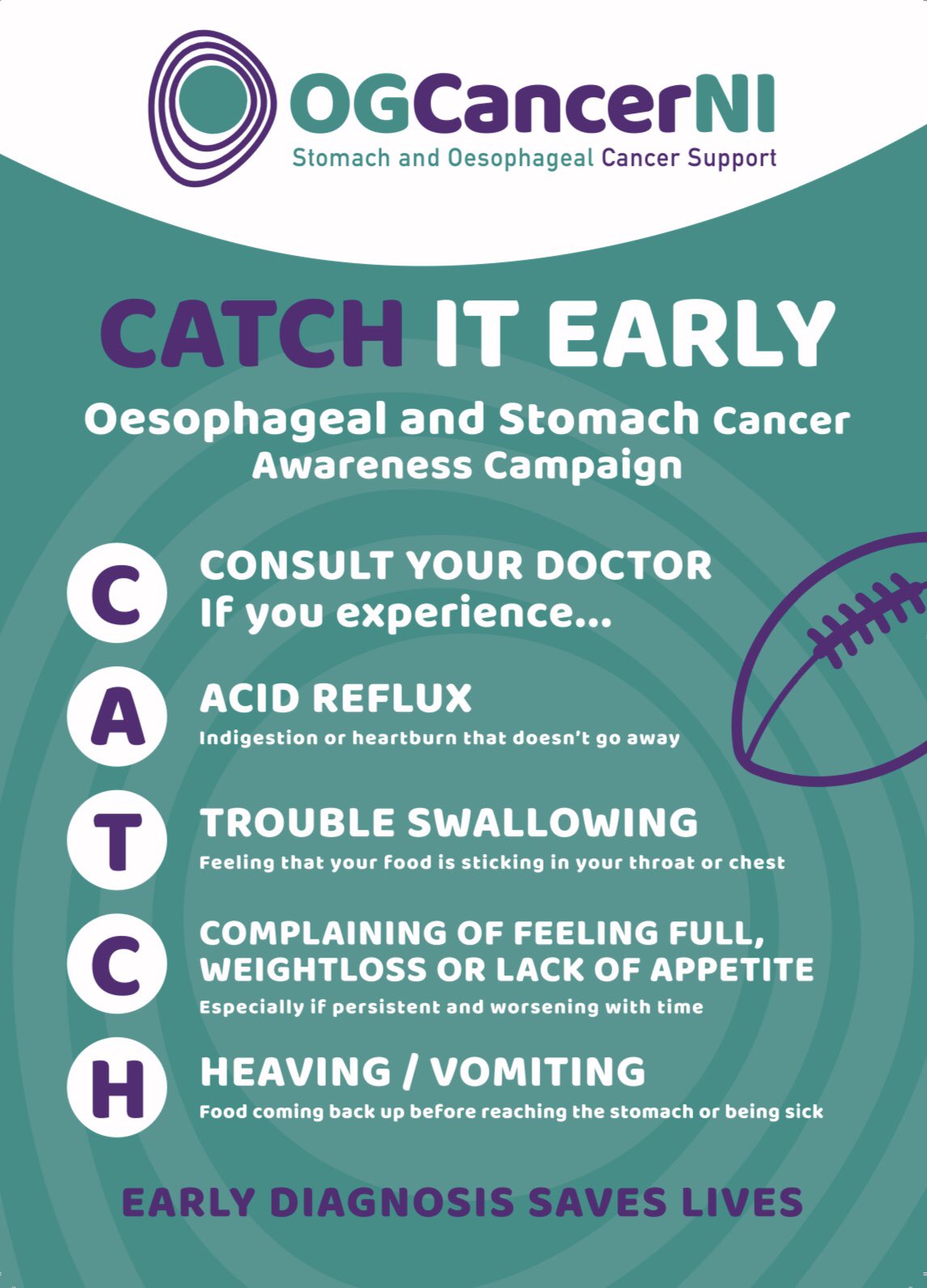 Thursday the 6th of June saw the official launch of OGCancer NI's campaign, 'Catch It Early'. The UK has the highest rate of OAC in the world, and the worst patient outcomes. A huge factor in this remains the lack of public awareness of the disease, especially of the early signs and symptoms.