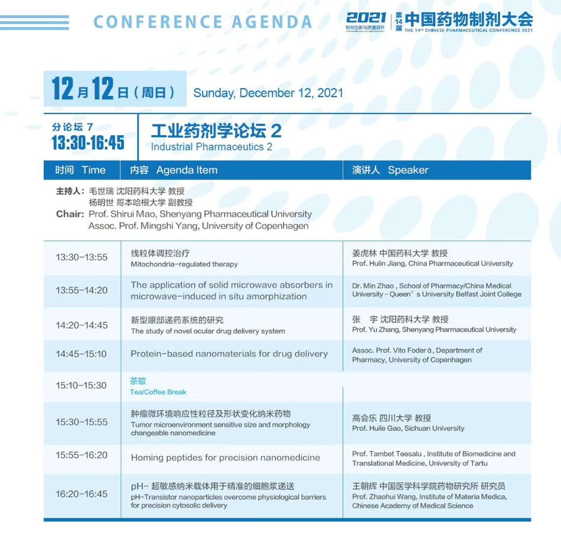 Dr Min Zhao was invited to speak at the 14th Chinese Pharmaceutical Conference 2021 in Shenyang (held virtually due to the COVID-19 pandemic) between 11 - 12 December 2021.