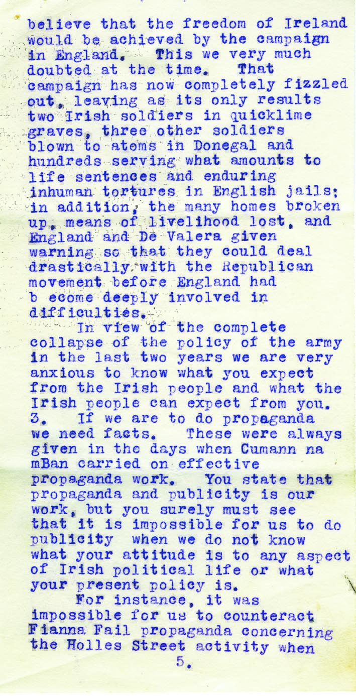 Source: Cumann na mBan letter to the IRA, June 1940, Humphreys papers (courtesy of UCD Archives).