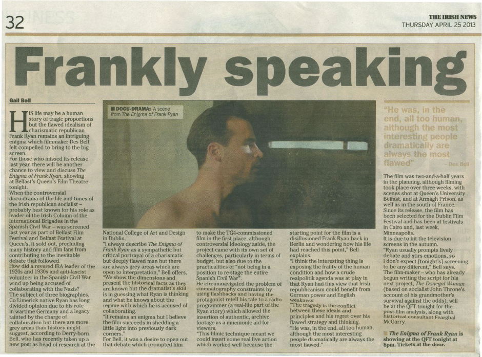 The Enigma of Frank Ryan screened at Queen's Film Theatre on Thursday, the 25th of April, 2013.