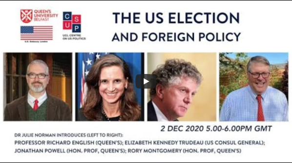 Chaired by the Institute's Distinguished Professorial Fellow, Richard English, the panel included two of the Institute's Honorary Professors of Practice Jonathan Powell and Rory Montgomery, as well as US Consul General in Belfast, Elizabeth Kennedy Trudeau. Former Institute Fellow, Julie Norman, now at University College London, introduced the event.