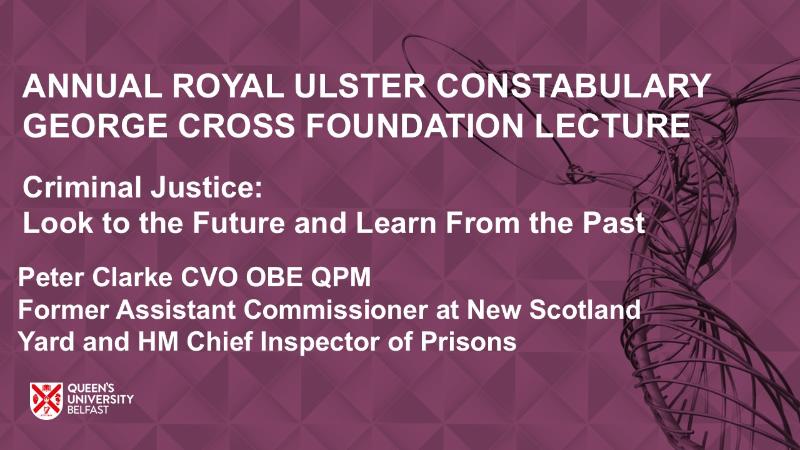 This year’s Royal Ulster Constabulary George Cross Foundation Lecture will be delivered by Peter Clarke CVO OBE QPM, former Assistant Commissioner at New Scotland Yard and HM Chief Inspector of Prisons.