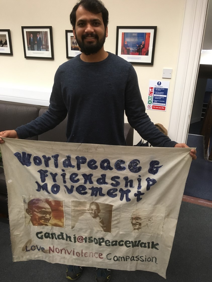Inspired by Gandhi, Nitin Sonawane set out from India three years ago to walk the world for peace. He visited the Mitchell Institute on 16 January and met with John Brewer and Hastings Donnan.