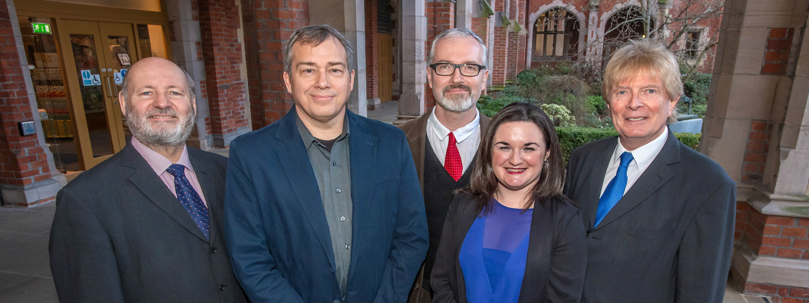 Pictured from left to right: Professor John Brewer, Dr James Waller, Professor Richard English, Dr Cheryl Lawther and Professor Hastings Donnan.