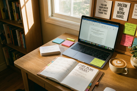 I am a big fan of visual reminders. Having a whiteboard in your room with a study plan or sticky notes on your laptop desktop to keep reminding you of your focus areas.