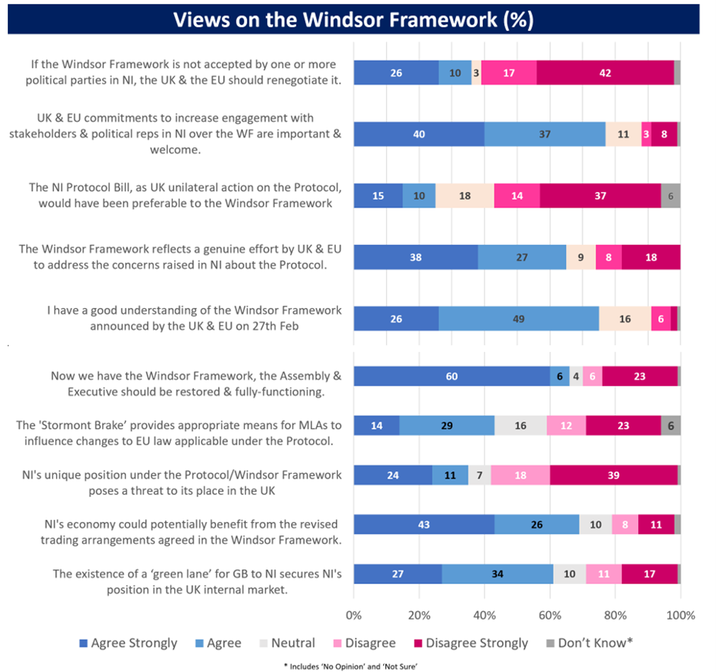 - Almost two thirds (65%) agree that the Framework reflects a genuine effort on the part of the UK Government and the European Commission to address the concerns raised by people and businesses in Northern Ireland about the Protocol; 26% disagree.