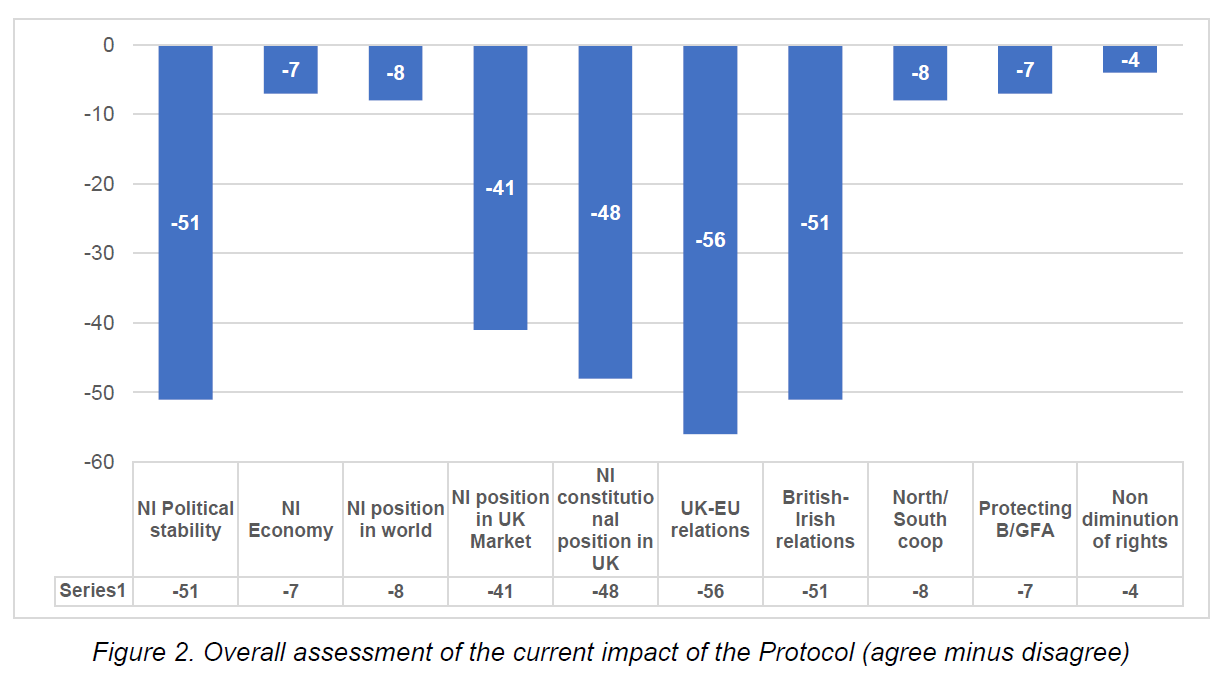 The survey also took place following the UK government’s formal response to the European Commission’s notice of legal action from 15 March 2021, although no further EU action has been taken. Judicial review proceedings challenging the Protocol have also been ongoing.