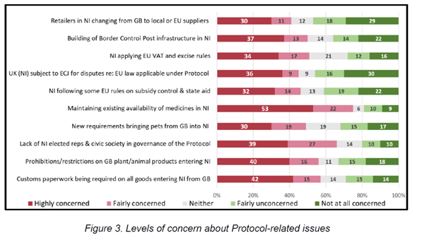 • Levels of concern about the Protocol-related issues identified by the UK government vary quite widely
