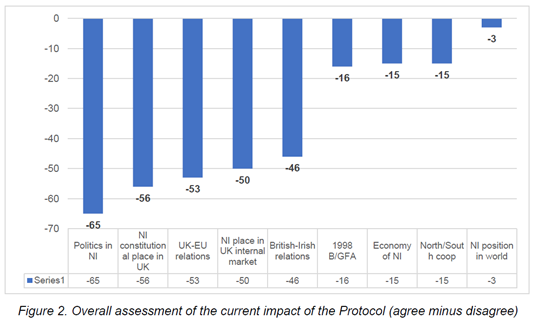 - After three months of implementation, the overall assessment of the economic and political impact of the Protocol among NI voters is predominantly negative.