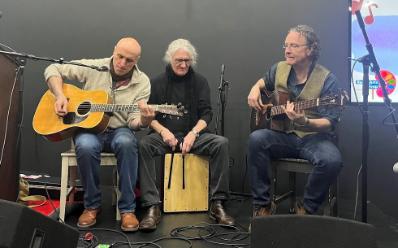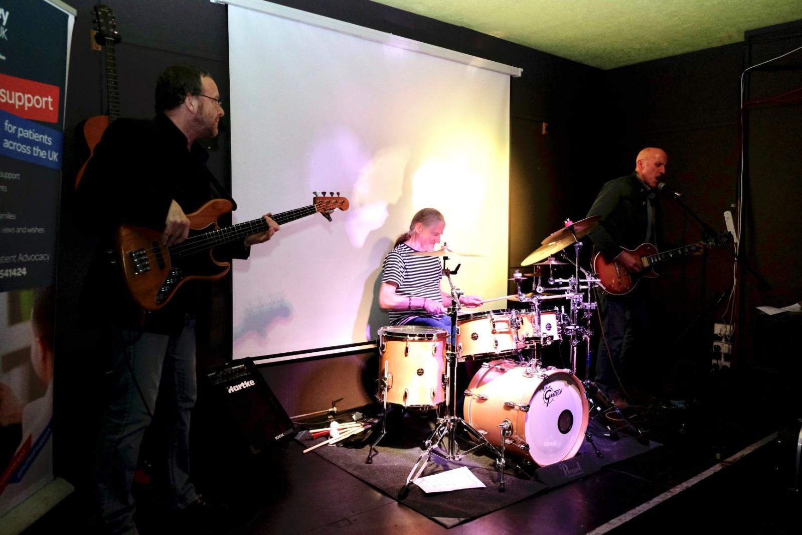 The event, hosted by Dr Claire Hill, Research Fellow at the QUB Centre for Public Health, featured flash talks from the Centre’s promising researchers, an overview of the ongoing work of RAG by Dr Trisha Forbes and the COSMIC study by Anna Wilson, and charity updates from Patty Gilbert from Northern Ireland Kidney Patients Association, Susan Kee from Northern Ireland Kidney Research Fund and Jo-Anne Dobson from Kidney Care UK. RagBone closed the event with a fantastic acoustic set, featuring Mr Ian Walsh, Consultant Surgeon and Senior Lecturer on vocals and lead guitar, Alistair MacKenzie, Social Worker at South Eastern Health and Social Care Trust on bass guitar and Lyn McMullan, Audio-visual Producer on drums.
