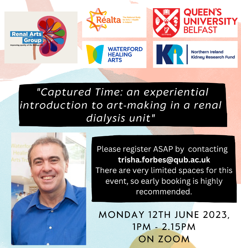 Stephen Greer: Honorary Lecturer at Queen's University, Co-Chair of the Renal Arts Group, Artist and Arts Facilitator at the Prison Arts Foundation.