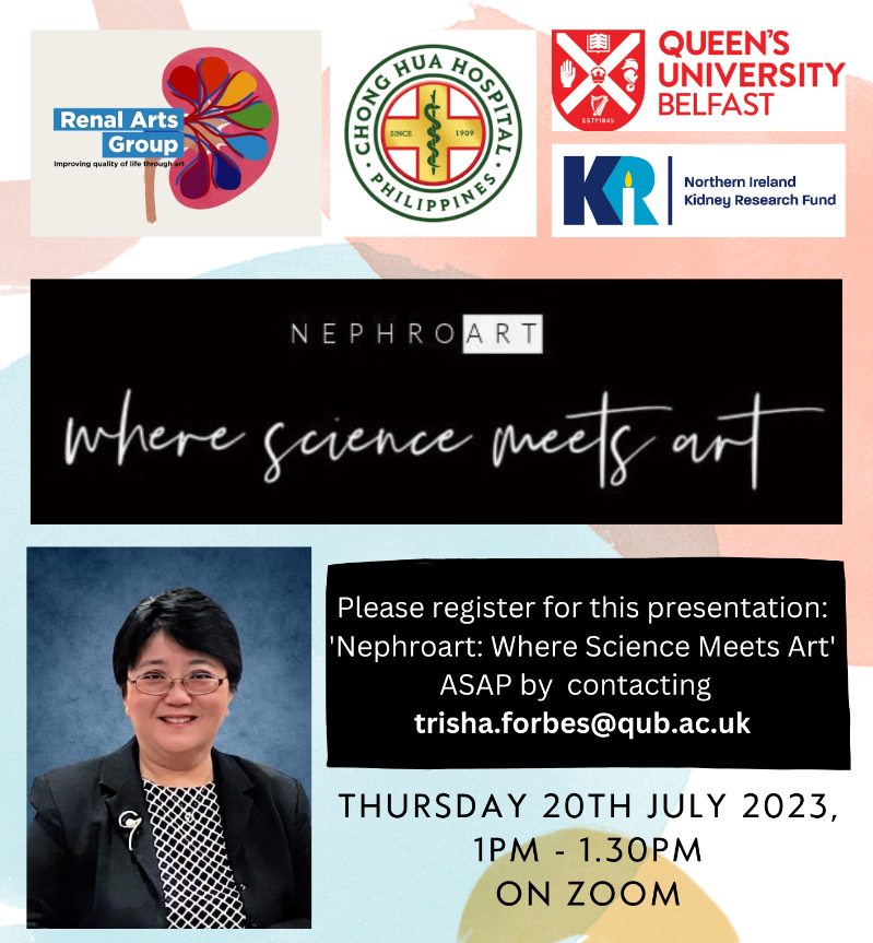Join us for an afternoon of hot desking, where experts and talented artists from the QUB Renal Arts Group will guide you through hands-on art interventions that are used to support and uplift kidney patients undergoing dialysis. Get inspired as you hear insights from local and regional kidney disease charities (Northern Ireland Kidney Research Fund), showcasing the incredible work they do to transform the lives of patients and their families.