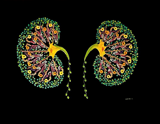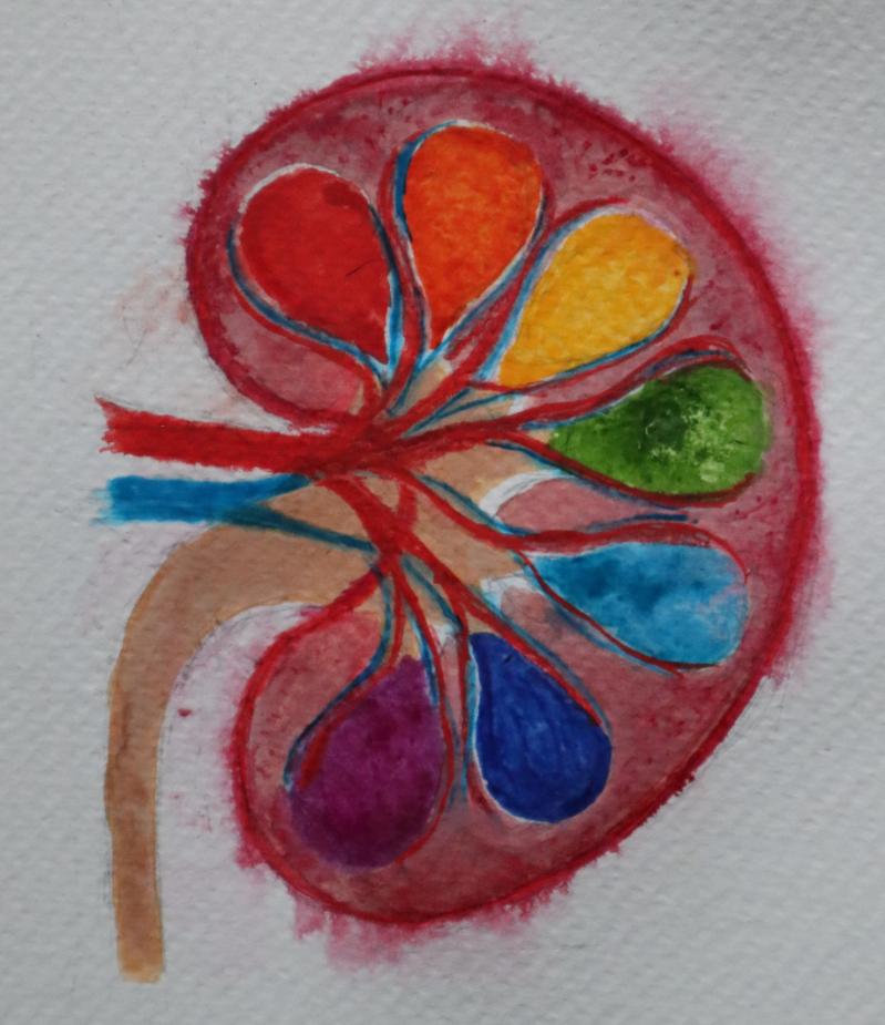 Paul recognized the similarity in shape of the kidney and an artist’s palette, and created a beautiful painting of a rainbow kidney as a gift for his surgeon shortly after receiving his kidney transplant. Paul kindly gave permission for the Renal Arts Group to adopt his rainbow kidney as the symbol for our group. .